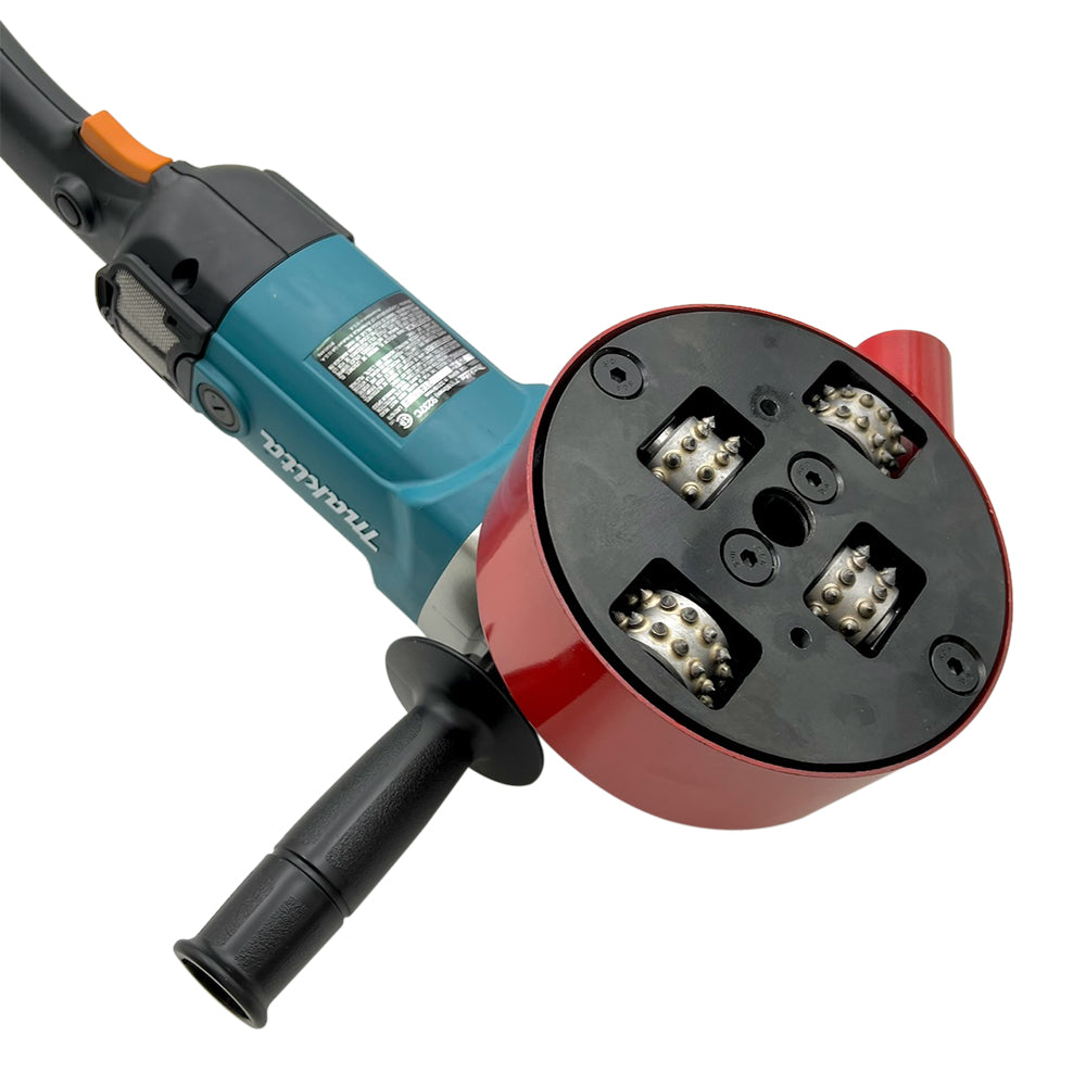 Bush Hammer es una herramienta de preparación ultra agresiva para usar en la amoladora manual. Bush Hammer está diseñado para pulverizar la superficie del concreto, lo que hace que sea rápido y fácil llegar a la exposición completa del agregado. También es ideal para la eliminación de revestimientos.