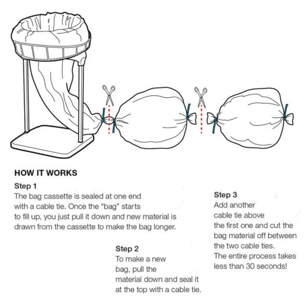 Style: Continuous liner Bag Thickness: 5.5 mil thickness Total Bags: Makes up to 25-30 bags total Specification: Mini_4 Pack - Flat Width: 560 mm, Length: up to 23 meters (72ft)