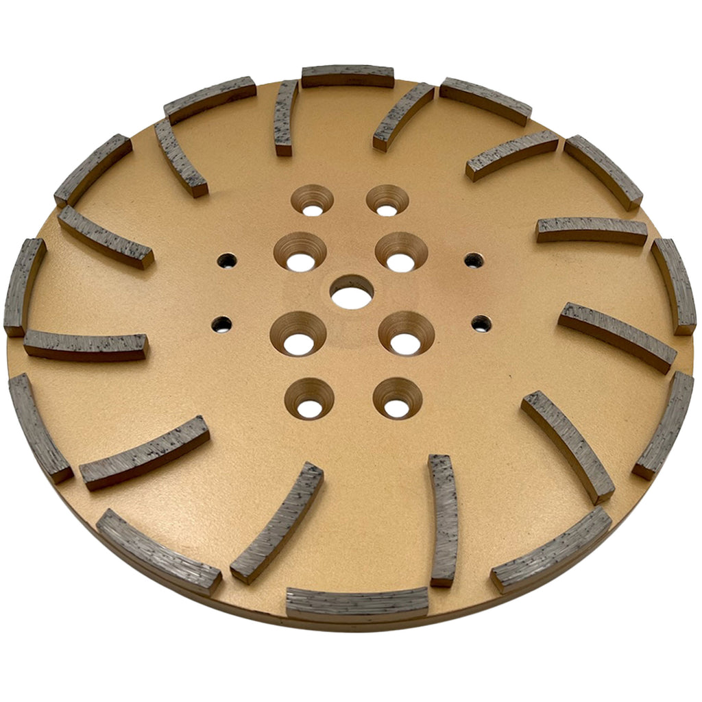 10" grinding head for floor grinders, with varying diamond grits designed for concrete, epoxy, mastics, thinset, water-proofing coatings and more.