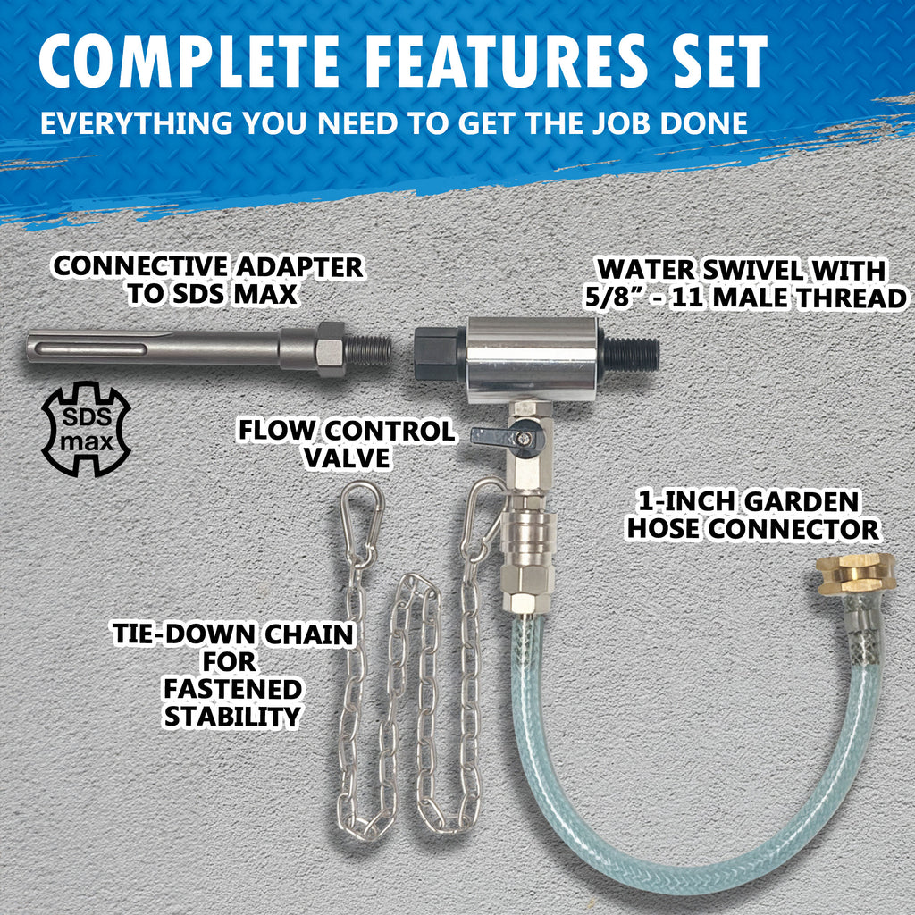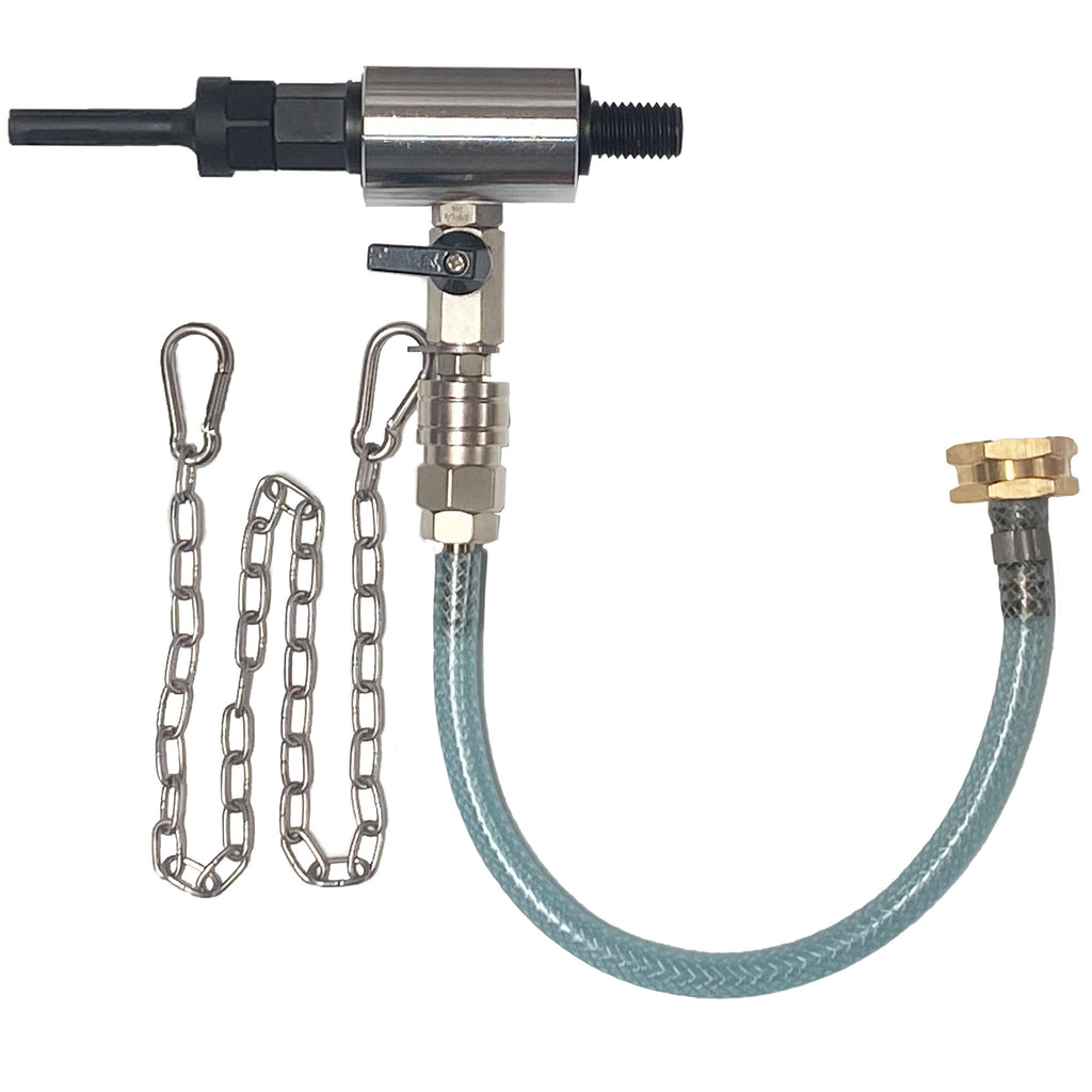 Ideal for horizontal or deep wet drilling when water-feeding drills is not an option. Water feeding connection is 1" garden hose.
