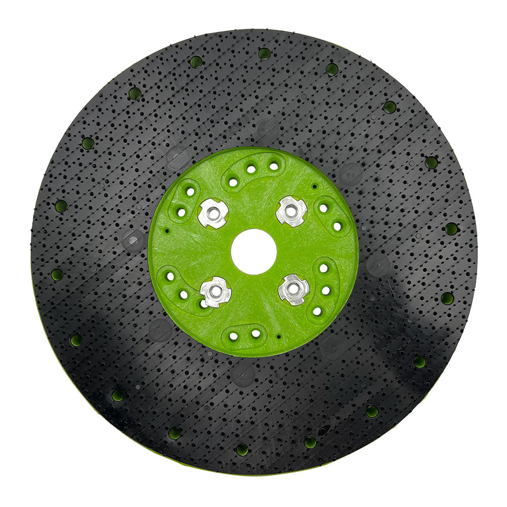 Both the bolt-on plate bearing mount and the 14" pad driver are needed to fit 14" hog hair pads, and the velcro adapter plate is needed to fit 3" velcro-backed metal bond pads.